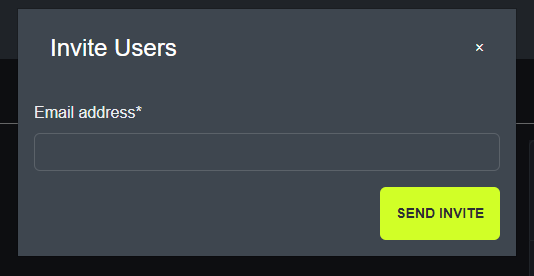 In the pop-up box, enter the email address of the person you are inviting. Click on Send Invite.
