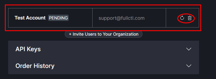 Pending invitations will appear in the User list. There is an option to resend the Invitation. There is also an option to delete the pending invitation.