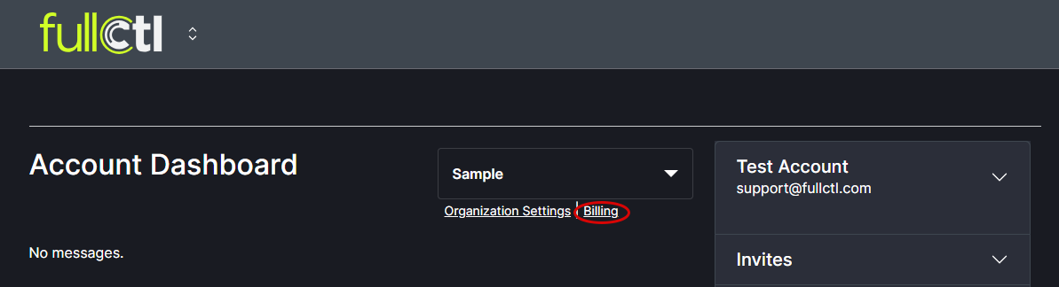 Note: If a second billing contact and credit card is added for your Organization, the system will automatically charge the newest credit card added. If you would like a different card to be charged please contact support@fullctl.com.