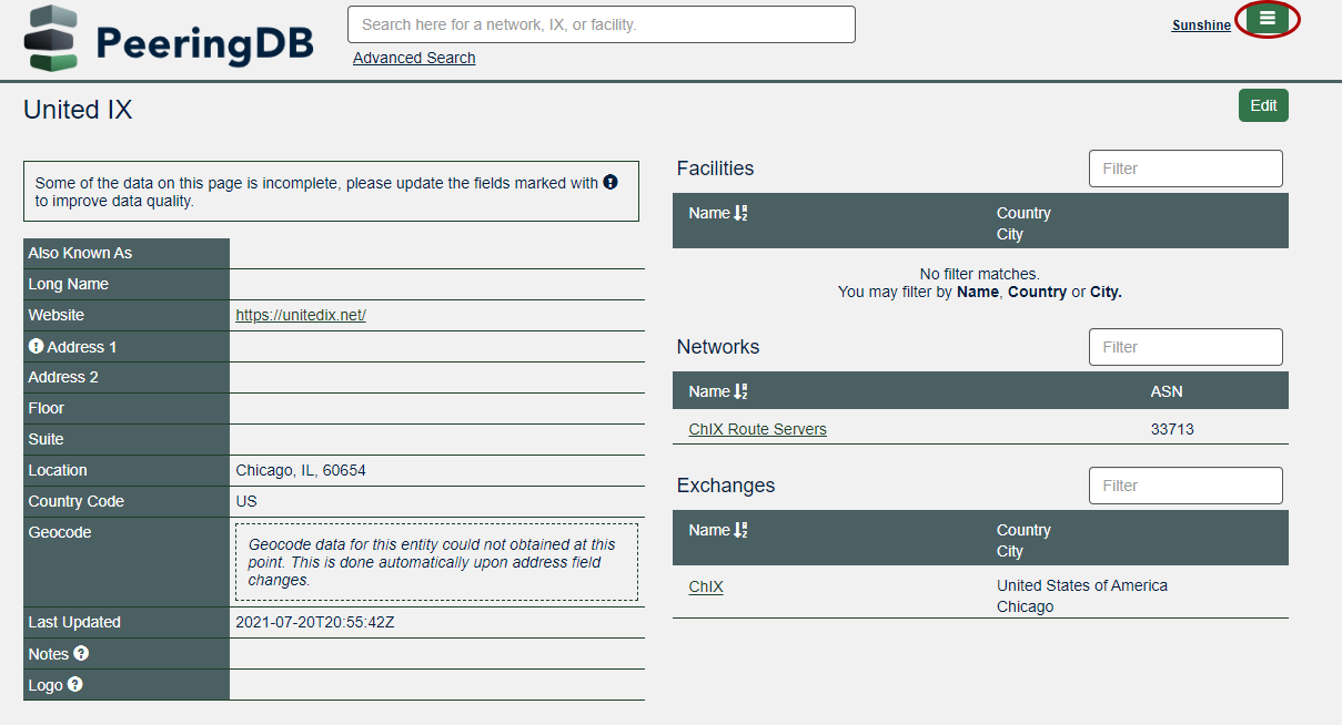 Under LAN, check the box next to Enable IX-F Import. In the box for IX-F Member Export URL, paste the link you copied from the IXCtl website. Click Preview to request an import during the next update (midnight UTC) or click Request Import for an immediate import. Click save in the lower right corner of the page.